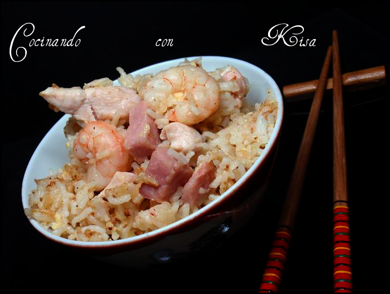 Se coloca el arroz en un bol, se agregan las tocinetas con el cebollin sofrito, las ciruelas pasas y la salsa de soya y se va mezclando en forma envolvente hasta mezclarse completamente.