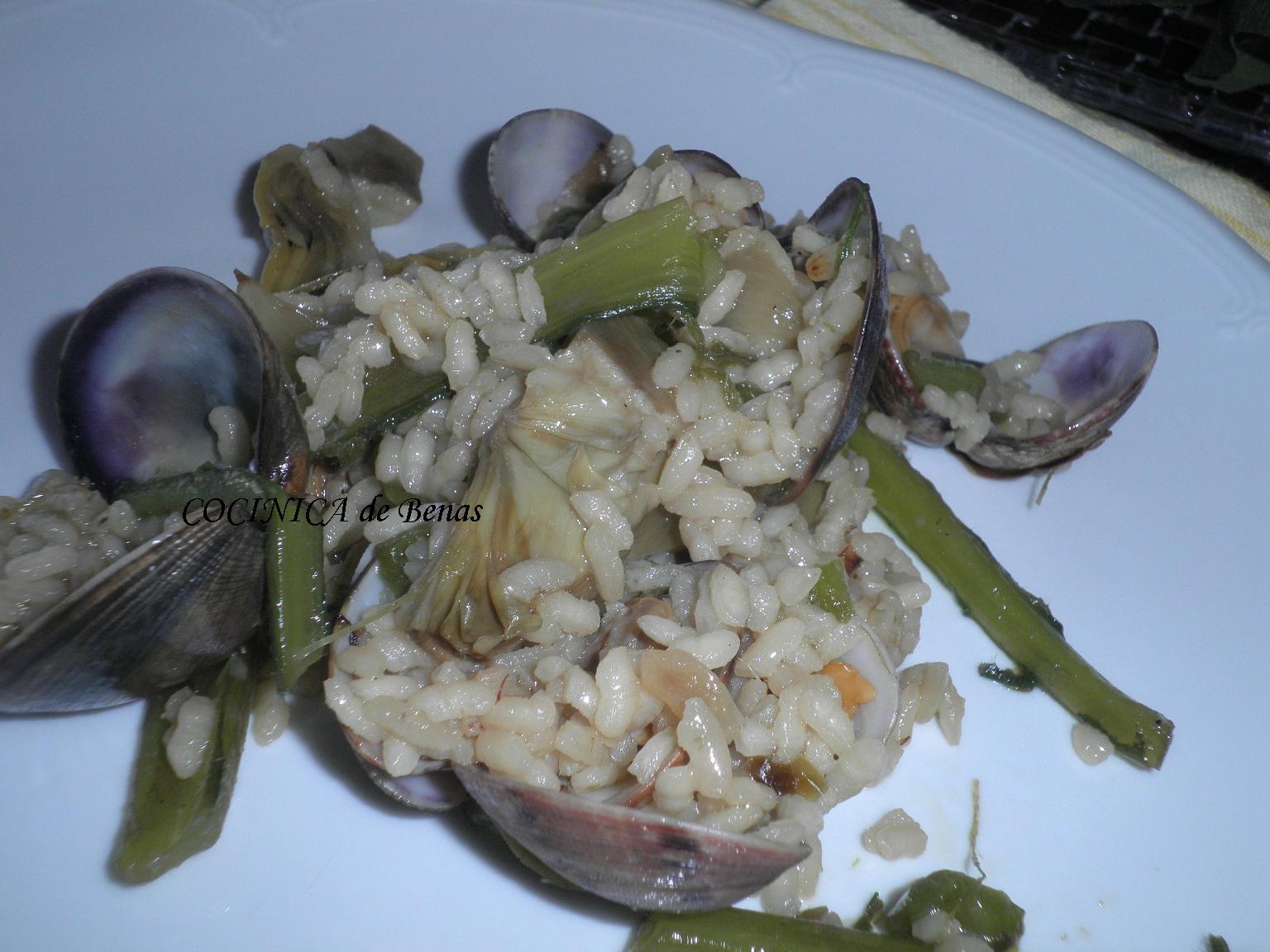 Ingredientes Arroz. Borraja. Almejas. Ajo. Perejil. Aceite de oliva. Caldo de pescado. Harina y sal. Preparacion Echar un poco de aceite en una sartén y sofreír un poco de ajo muy picado y perejil. Ligar con un poco de harina ycaldo de pescado. Añadir las borrajas cortadas en bastoncillos y el arroz. Cuando lleve unos diez minutos hirviendo, añadir la sal y las almejas. Cuando éstas estén abiertas, rectificar de sal y el punto de arroz. By JOSS Receta de Aragón