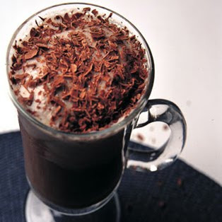 Ingredientes 200 gramos de plátanos pelados. 50 gramos de azúcar. 1/2 litro de leche. 1/2 litro de helado de vainilla. 400 gramos de cobertura de chocolate negro. Virutas de chocolate. Preparacion Pelamos los plátanos y reservamos 12 rodajitas para decorar. El resto del plátano pelado, troceado y junto con la leche y el azúcar, lo trituramos en un vaso alto de batidora hasta formar una crema. A continuación añadimos el helado de vainilla y seguimos triturando hasta formar una crema homogénea y fría. Deshacemos la cobertura de chocolate al baño maría, y con esa cobertura caliente llenamos el fondo de la copa. Sobre la crema de chocolate caliente vertemos el batido de plátano frío y decoramos con unas brochetas de plátano y virutas de chocolate. By JOSS