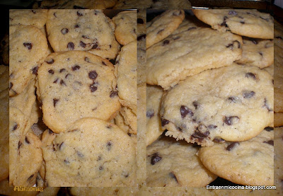 Ingredientes 150gr. (6 barritas) de chocolate Nestle Postres 300gr. de harina 120gr. de mantequilla 110gr. de azúcar 100gr. de nueces 1 huevo 1 cucharadita de levadura en polvo Preparacion Batir la mantequilla ablandada con los dos tipos de azúcar hasta que esté cremosa. Añadir el huevo batido, la harina y la levadura tamizadas y mezclarlo bien. Partir el chocolate en trocitos pequeños procurando que sean de tamaño regular y picar las nueces, agregarlo a la preparación anterior y dejarla en el refrigerador durante 1 hora. Untar una placa de horno con mantequilla y con una cuchara formar pequeñas porciones redondearlas dejando espacio entre ellas. Cocerlas al horno suave hasta que estén ligeramente doradas (de 10 a 15 minutos) y enfriar. (Estas galletas pueden conservarse durante varios días en un caja que cierre herméticamente).