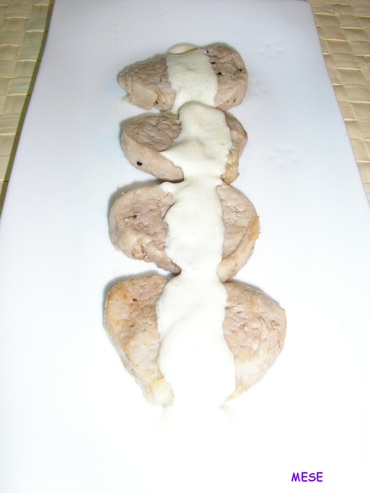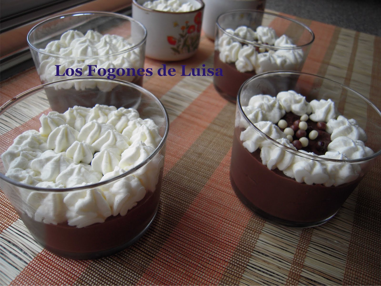 Mezclar las arvejas, los champignons, los granos de choclo, los cubos de pimiento y aceitunas en cuatro o seis copas o compoteras, echar por encima la salsa y servir.