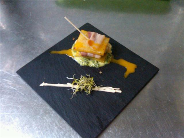 Ingredientes 1 kg de espinas de bacalao desalado 1/4 l. de aceite de oliva 1 cabeza de ajos 3 guindillas 1/4 l. de agua 800 g de bacalao desalado (colas) 200 cl de nata Preparacion En la cazuela poner las espinas, el agua, las colas de bacalao, los ajos y el aceite a fuego lento durante 1/2 hora aproximadamente. Colar y prensar bien para obtener el máximo de jugo. Dejar reposar. Una vez frío, emulsionar con la batidora. Añadir la nata y llenar el sifón, cargar y dejar reposar en la nevera. By JOSS Receta de sifón. EJEMPLO: Una auténtica brandada de bacalao con cebollitas a la miel. Restaurante El Bulli