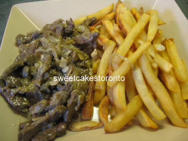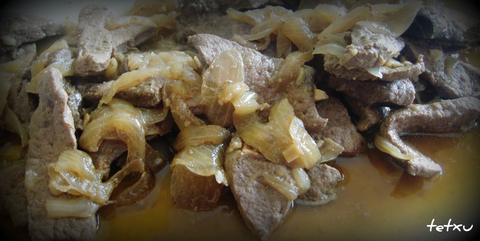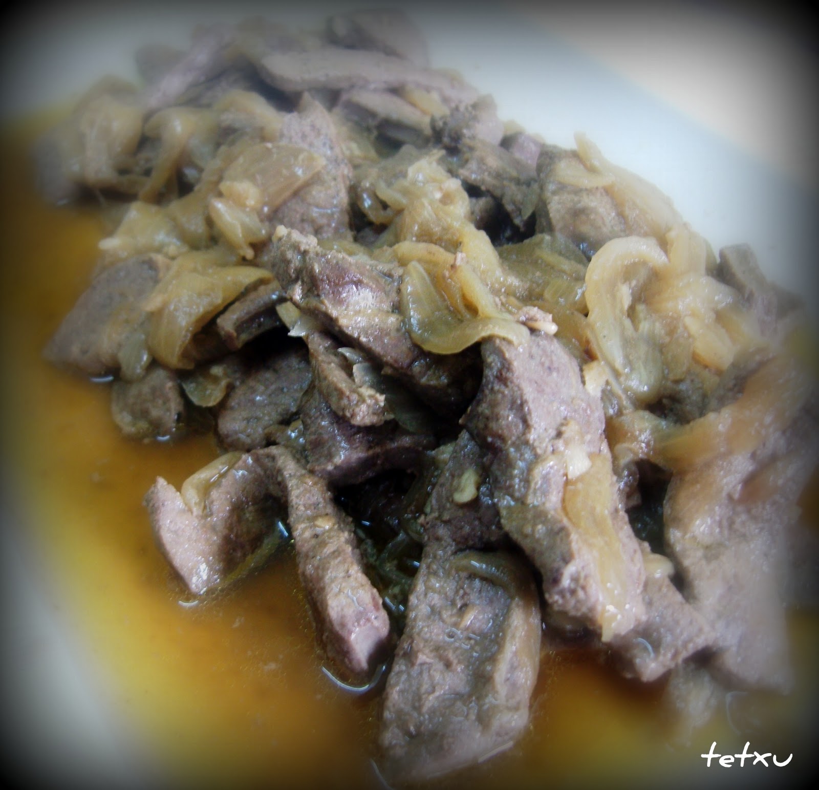 Ingredientes 4 filetes de hígado de buey de ración 600 gr. de calabacines 1 vaso de caldo de ave 2 cucharadas soperas de aceite 1 cucharada sopera de perejil 2 pizcas de paprika 6 gr. de maizena sal y pimienta harina para enharinar Las vísceras deben consumirse MUY FRESCAS. Preparacion Se aclaran los calabacines. Se secan y se cortan en rodajas. Se pone el aceite en una sartén y se doran las rodajas de calabacín durante 10 minutos. Se sazonan con sal y pimienta y se espolvorea perejil picado sobre ellas. Mientras tanto, en otra sartén, se pone un poco de aceite y se fríen los filetes de hígado, previamente sazonados y pasados por harina, por ambos lados. Se sacan a una fuente caliente. En esa misma sartén se echa la cucharada de vinagre y se rasca el fondo con una cuchara de madera. Se añaden un poco de caldo de ave, el paprika y la maizena. Se deja hervir la salsa un momento, hasta que se ligue, y se napan los filetes con ella. Se ponen las rodajas de calabación alrededor y se espolvorea perifollo picado sobre el conjunto.