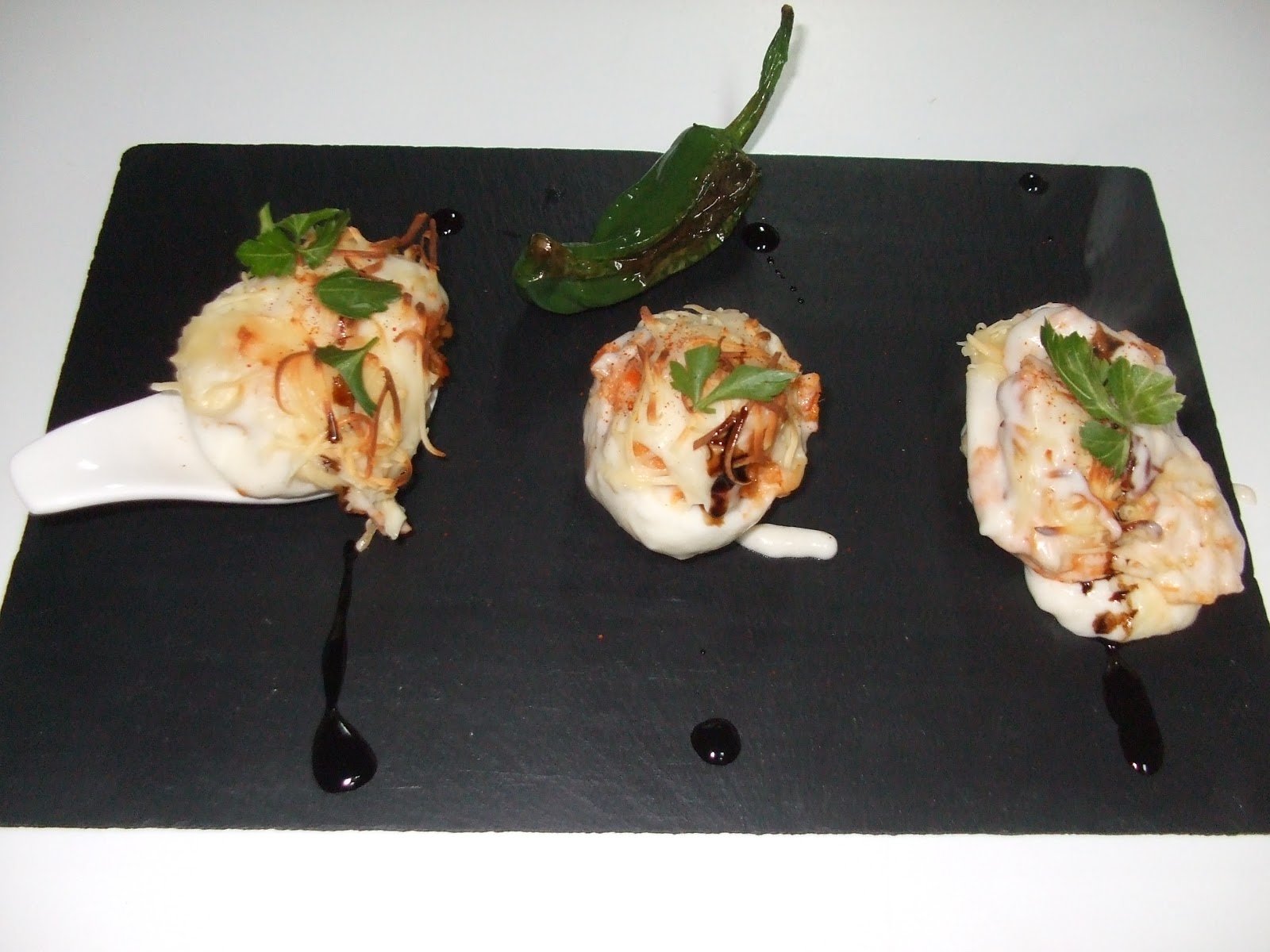 Ingredientes 8 huevos. 3 latitas de atún al natural. 8 cucharadas de mayonesa. 100 gramos de palitos de cangrejo. 1/2 lechuga. Preparacion Ponemos al fuego un cazo con agua y cuando ésta rompa a hervir, añadimos un chorrito de vinagre (para que no se rompan los huevos) e introducimos los huevos. Dejamos cocer durante 10 minutos, cuando el agua hierva de nuevo. Una vez pelados y cortados por la mitad longitudinalmente, quitamos la yema. Hacemos una masa uniforme con las yemas, el atún escurrido, los palitos de cangrejo picados y la mayonesa. Rellenamos con la mezcla los huevos. Introducimos 20 minutos en la nevera antes de servir. Servimos sobre una cama de lechuga que picaremos en el último momento antes de servir, y podemos aliñar la lechuga ligeramente con un poco sal, vinagre y aceite. By JOSS Los huevos rellenos son un plato muy popular, gracias a su agradable sabor y a la facilidad y rapidez con que se elabora. En este caso los huevos, fuente de proteínas de buena calidad, se rellenan con palitos de cangrejo y atún. Ambos alimentos son también buena fuente de proteínas. El relleno se completa con un salsa mayonesa, que además de dar sabor, hace que los ingredientes del relleno se liguen. La salsa mayonesa, debido a los ingredientes utilizados en su elaboración, es una salsa de alto contenido graso, por lo que si se desea disminuir el contenido calórico del plato, resulta útil sustituir esta salsa por una variedad baja en calorías, o bien reemplazarla por otro tipo de salsa más ligera, elaborada por ejemplo a base de vegetales. Al acompañar los huevos con una guarnición de lechuga se aumenta el contenido en vitaminas y antioxidantes, además de hacer que la presencia del plato resulte mas atractiva.