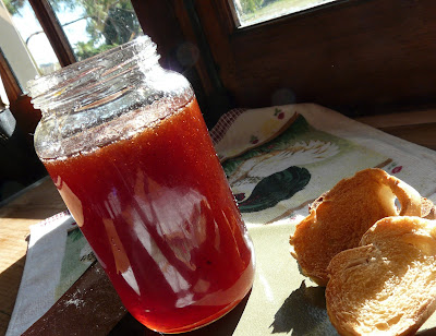 Método: A las cáscaras y semillas sobrantes de la receta de la mermelada, hervirlas nuevamente en su propia agua de cocción con el agregado de 1/2 litro de agua durante 1 hora aproximadamente. Colar por un lienzo fino y haciendo un paquete tipo caramelo, apretar bien hasta que se haga una pulpa. Volver a pasar el líquido resultante por otro lienzo fino y agregarle el azúcar, a razón de 1 kilo por litro. Volver a hervir hasta que tome punto de jalea espesa. Durante la cocción retirar con una espumadera la espuma puesto que esta contaminaría la jalea. Envasar en caliente en frascos esterilizados, dejar enfriar fuera del agua y guardar en heladera.