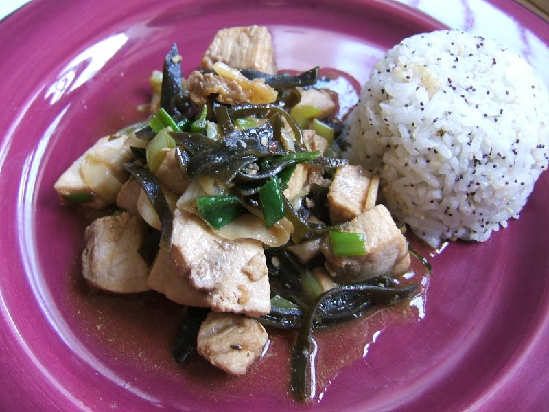 Echaremos las tiras de Kombu (sin lavar) en el aceite y las freiremos durante unos segundos, hasta que el color cambie y se vuelvan crujientes.