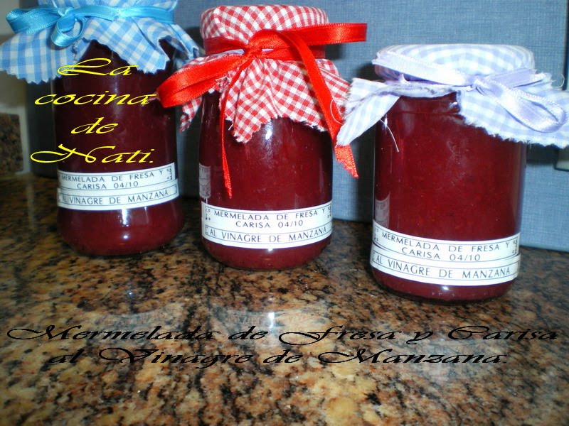 Verificar la consistencia de la mermelada, poniendo una pequeña cantidad en un plato y metiendo al frigorífico durante 20 minutos aproximadamente. Al cabo de este tiempo, empujar con el dedo y si la mermelada se "arruga", estará en su punto. De no ser así, cocer unos minutos más. Poner la mermelada caliente en frescos, previamente esterilizados, cerrar herméticamente y poner boca abajo hasta que se enfríen. Al cabo de 24 horas, verificar que se ha hecho el vacío intentando abrir los frascos. Si se abren con facilidad, habrá que consumirlos o conservarlos en el frigorífico. Su cuesta abrirlos, pueden etiquetarse y guardarse en un lugar fresco oscuro y seco.