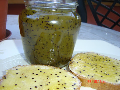 Método: Se pelan los kiwis y se hacen puré con la licuadora. Añadir el azúcar, la ralladura y el zumo del limón colado. Mezclar bien y calentar en una cacerola grande de acero inoxidable a fuego lento suave, sin parar de remover, hasta que el azúcar se haya disuelto. Llevar entonces a ebullición y cocer, removiendo con frecuencia, durante 20 minutos. Comprobar el punto poniendo una cucharadita de mermelada en un platito enfriado en la nevera: si se arruga al empujarla con el dedo, ya está lista; si no, cocer durante 5 minutos más. Verter la mermelada en tarros herméticos que se habrán calentado previamente en el horno templado durante 20 minutos, sellar, etiquetar, fechar y guardar.