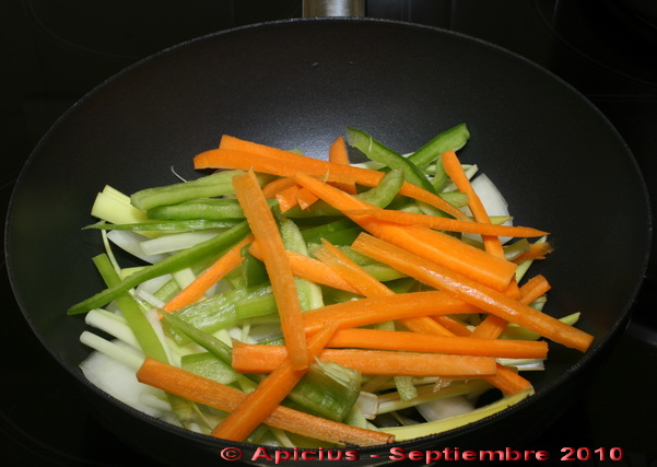 Ingredientes 4 lomos de mero de 150-200 gr. 2 zanahorias 1 puerro 1 tomate media cebolla aceite virgen extra sal - Para la fritada: media berenjena medio pimiento morrón rojo 2 tomates media cebolla medio vaso de vino blanco aceite virgen extra sal pimienta perejil picado Preparacion Para hacer la fritada, pocha en una sartén con un poco de aceite la cebolla fileteada. Cuando esté echa añade la berenjena y el pimiento, todo troceado. Cocínalo durante 5 minutos. Trocea los tomates en daditos y añádelos a las verduras. Agrega el vino blanco y cocina a fuego suave. Para el papillote, corta en juliana la otra media cebolla, las zanahorias y el puerro. Pocha todo en una sartén con un chorrito de aceite. Sazónalo y remuévelo de vez en cuando. Cocina durante 10 minutos. Rectifica de sal. Salpimienta los lomos de mero. Prepara cuatro rectángulos de papel de aluminio y pon encima las verduras, los lomos de mero y una rodaja de tomate. Cierra y haz los paquetitos con el papel de aluminio. Introdúcelos en el horno a 220 C. durante 10 minutos. Sirve el papillote con la fritada. Espolvorea perejil picado. Para quitarle ese punto de sabor amargo a las berenjenas, cortar las berenjenas en rodajas gruesas, las espolvoreas con sal gorda y vierte sobre ellas un poco de leche, las dejas reposar unas dos horas, las escurres y las secas con un papel. -cocina-recetas-