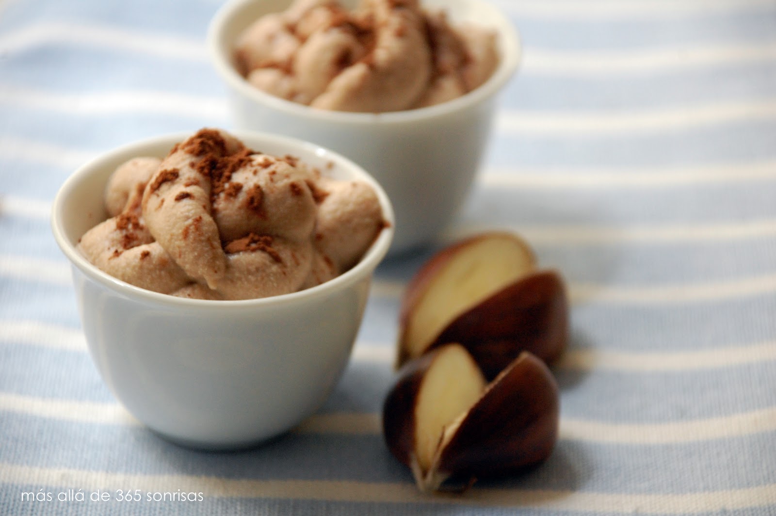 Ingredientes 3/4 kg de castañas agua sal 50 gr de manteca 150 gr de harina fina 150 gr de leche 5 huevos chocolate de cobertura Preparación Cocemos 3/4 kg de castañas en agua con sal. Deguidamente las pelamos y pasamos por el pasapures. Aprte mezclamos 50gr de mantequilla, 150 gr de harina fina, 150 gr de leche, y las yemas de los 5 huevos hasta lograr una masa homogenea a la que añadaimos las castañas y las claras montadas. Vertemos en un molde engrasado, la masa formada. Cocemos a horno medio, previamente calentado, unos 30 minutos. Lo sacamos, desmoldamos y cubrimos con una guresa capa de chocolate de cobertura fundido. Receta Recuerdos de Guisanderas