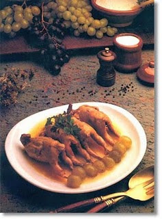 Ingredientes 4 perdices 1 racimo de uvas moscatel 1 vaso de jerez1 cebollaMantecaSal Pimienta Preparación