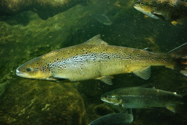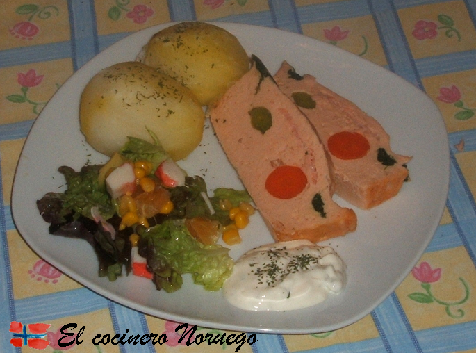 Ingredientes 600 gr. de salmón noruego fresco 2 tomates maduros 2 pimientos verdes Aceite de oliva Caldo de pescado 1 cebolla 1 berenjena 1 calabacin Pimienta Perejil Sal Preparacion El salmón limpio y desespinado se parte en tacos regulares y se reserva. Se rehoga la cebolla picada junto con el pimiento verde partido, se añade la berenjena y el calabacín troceado en taquitos sin pelar, y por último el tomate escaldado pelado, sin pepitas y en cuadraditos se deja hacer lentamente, se salpimenta y se le añade un poco de caldo de salmón, hecho con las espinas y la piel. Cuando el pisto esté tierno se añade el salmón, se deja hacer 5 minutos y se retira. Se sirve espolvoreado de perejil