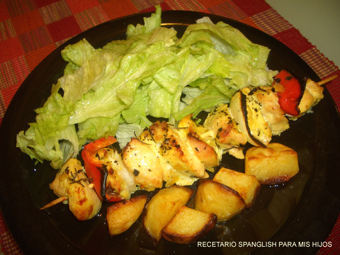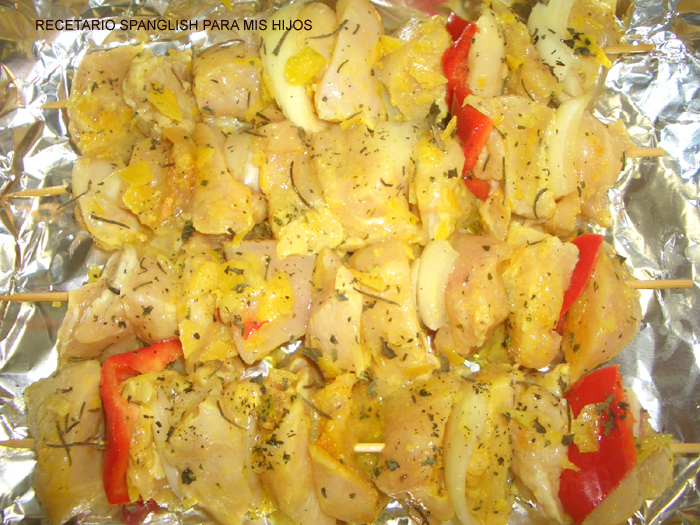 Preparación:Corte el pollo en octavos, disuelva el azafrán en un poco de aceite de oliva y úntelo por el lado de la piel, agregando también sal y pimienta.