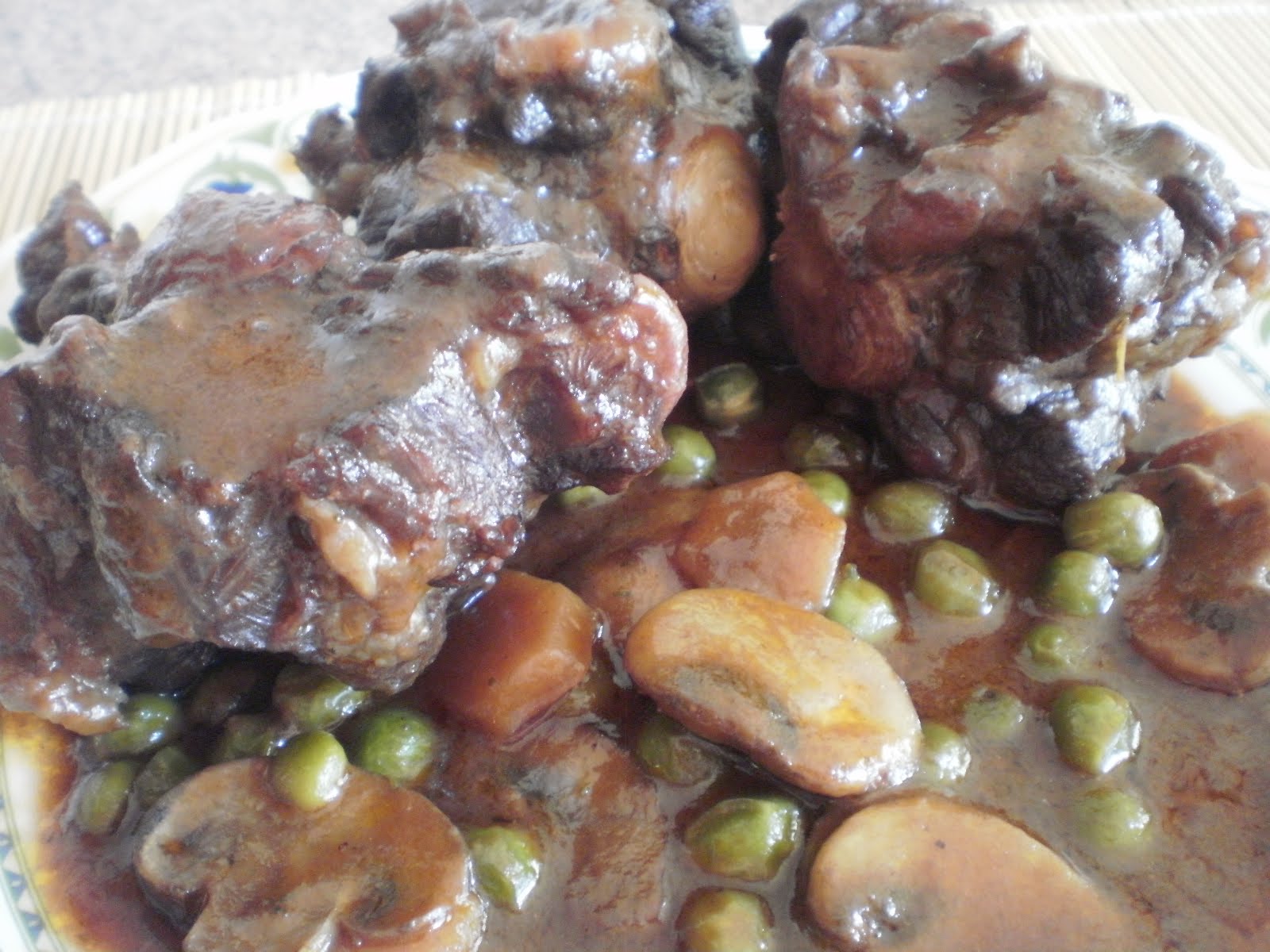 Ingredientes 2 rabos de buey 2 cebollas 2 zanahorias hermosas 3 dientes de ajo 1 pimiento rojo 1 pimiento verde 2 tomates 4 dl. de vino blanco una hoja de laurel harina para enharinar caldo de carne aceite sal pimienta Preparacion Se limpia bien la carne, quitando la grasa y las partes feas, y se trocea. Se sazonan los trozos de rabo, se pasan por harina y se fríen en una sartén. Se pasan a una olla a presión. En una sartén con aceite se sofríen la cebolla picada, el ajo picado, las zanahorias limpias y en rodajas y los pimientos picados. Cuando el sofrito esté casi hecho, se añaden los tomates pelados y troceados. Se sofríe todo junto, hasta que evapore el líquido. Se moja entonces con parte del vino blanco y se le da un hervor. Se pasa todo el sofrito a la olla, junto con el rabo de buey. Se añade una hoja de laurel, un poco de pimienta, el resto del vino blanco y un poco de caldo, hasta que quede cubierto. Se cierra la olla y, una vez empiece a salir vapor, se tiene una hora a fuego medio.
