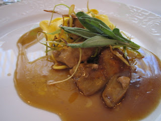 Ingredientes INGREDIENTES PARA 4 PERSONAS 3 huevos medianos 1 cucharada de café de aceite de oliva 300 g de harina Para EL RELLENO DE RAVIOLIS: 150 g de ternera 150 g de cerdo 150 g de pollo 300 g de foie de oca 1 copa de vino blanco 1 cebolla 2 dientes de ajo 1 dl de aceite de oliva 1/4 l de leche pimienta sal Para LA SALSA: 500 g de setas de temporada 1 cebolla 2 dientes de ajo 1 trufa mediana 1 copa de cognac 1 copa de Oporto 1/2 l de nata líquida Preparacion Para la masa colocar la harina en forma de volcán, poniendo los huevos en el interior y batiéndolos al instante, mezclar la harina con cuidado de no romper las paredes y amasar junto con el resto se los ingredientes y una pizca de sal. Dejar reposar la masa 30 minutos. Para el relleno, rehogar la cebolla y el ajo hasta dorar, añadir la carne de ternera, la carne de cerdo, la de pollo y el foie de oca. Rustir unos 20 minutos, echar el vino y dejar reducir. Añadir la leche y que cueza 5 minutos más. Triturar y reservar. Para la salsa, rehogar la cebolla, el ajo y cuando esté dorada, echar las setas con la trufa ya picada, saltear y cuando cojan color flambear con el cognac y el Oporto, una vez reducido el alcohol, añadir la crema de leche y pasar por el Turmix y el chino. Estirar la masa hasta darle el grosor deseado, con el cortapasta le damos la forma redondeada y ya procedemos a rellenar en el centro con un poco de la Farsa que hemos realizado teniendo la precaución de sellarla con un pincel y agua. Hervimos al dente y napamos una vez escurridos con la salsa de setas.