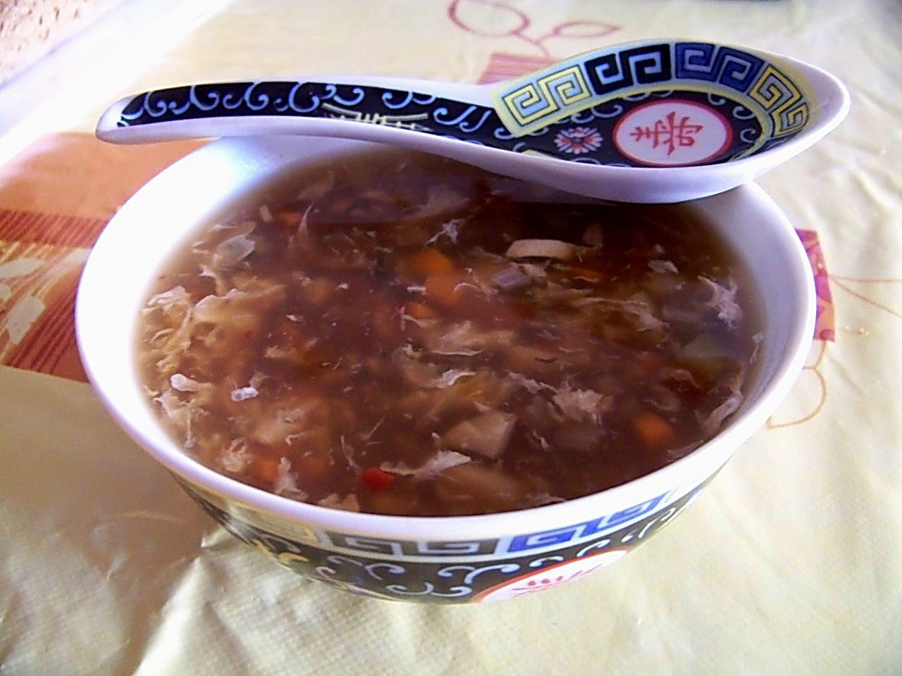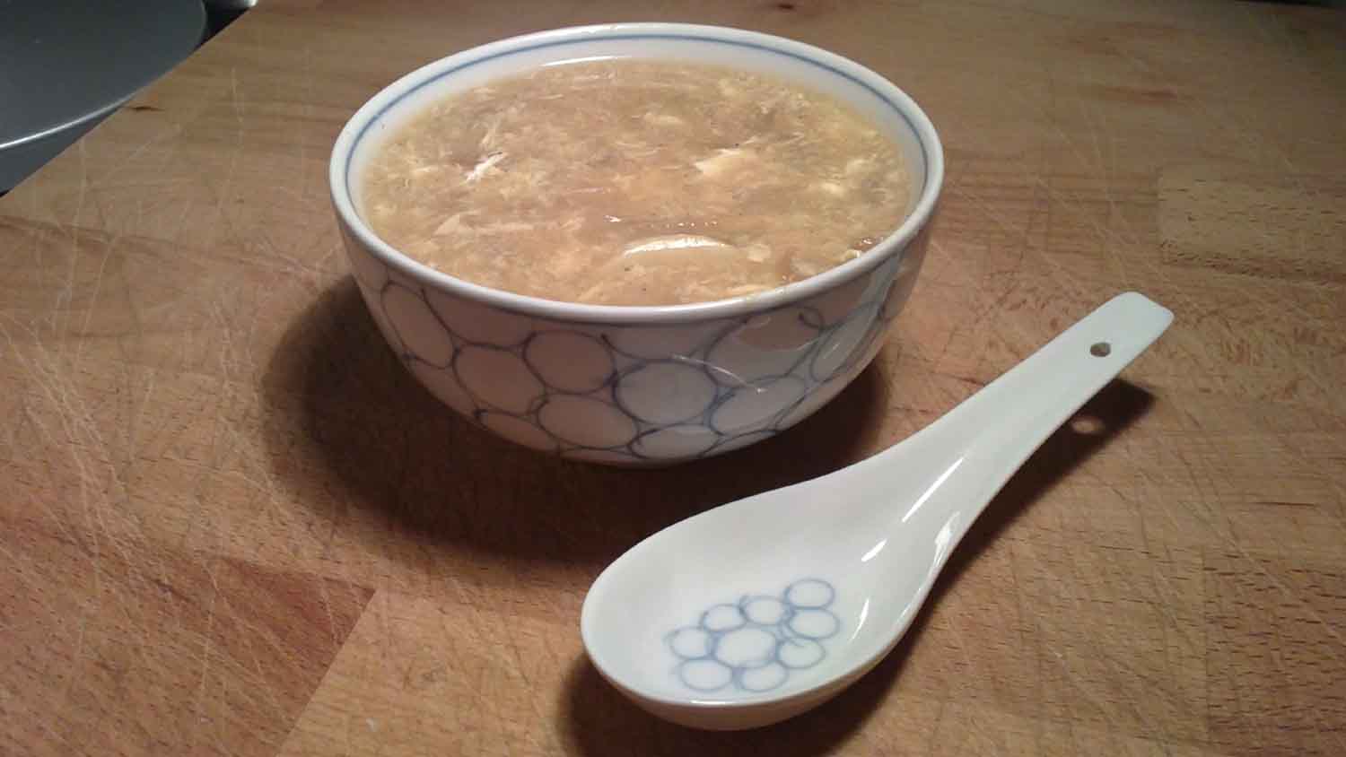 ReservarPoner en una cazuela el caldo de pollo, las setas cortadas en tiras finas, el pollo también cortado en tiritas y cocer hasta que esté tierno, unos 15 minutos Verter la mezcla de la harina, remover e ir añadiendo el huevo batido a través de los dientes de un tenedor para que salgan hilitos y no grumos.